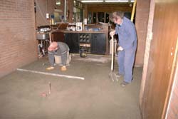 .... een mooie vlakke vloer, voorbereidingen voor een steenwolplatenplafond
