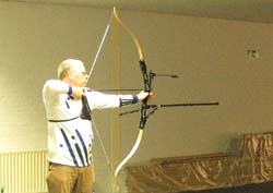 TWEEDE BONDSWEDSTRIJD 3-PIJL 18-METER TE NIMROD OP 26-9-2004 naar de uitslag naar Ulvenhout naar Rijen Iedereen was netjes op tijd om 9.00 uur present voor vertrek. Nimrod heeft een prachtige baan waar we prima worden ontvangen. Het is goed schieten hier in Etten-Leur. Lekker veel ruimte achter de schietlijn. ... Eerst uitpakken en opspannen. Izi Murré voor de eerste keer op wedstrijd, spannend. ... Eenmaal opgespannen, daan naar de schietlijn. ... Cor had problemen met zijn vizier en een nokje. Robin moet letten op schouder en voorarm.