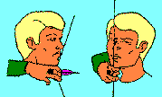 - de schutter kijkt in eerste instantie in een lijn loodrecht op de schietrichting.
