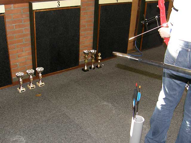 De eerste helft van de wedstrijd schoten de EWE’ers goed. Vader Peter Gommers eindigde één punt boven zijn zoon Diede. Ook Erik en Rick Janssen deden het, na wat rondgevraagd te hebben, zeker niet slechter dan hun tegenstanders. Het volgende deel werd het ze wat moeilijker gemaakt. In de hunterronde mag er per doel slechts één pijl geschoten worden. Corrigeren is dus niet mogelijk. Dit ging Peter iets minder gemakkelijk af, maar Diede had hier geen moeite mee. Bij Erik bleek hetzelfde. Rick vond deze ronde ook wat lastig, maar hij had in de eerste ronde dusdanig hoog gescoord, dat hij boven de anderen bleef.