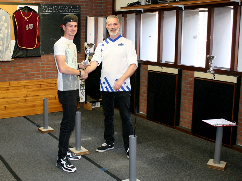 Enkele schutters waren helaas op vakantie. 10 schutters resteerden. 7 recurve en 3 hout. Als proef dit jaar werd ook een beker verschoten tussen de houtschutters. Koning Jesse was verhinderd. Slechts een junior daarom kon de titel Prins niet worden verschoten. Het werd een spannende strijd tussen Gyno, Patrick en Leo. Gyno startte ijzersterk, Leo stond halverwege voorop maar uiteindelijk won Patrick afgetekend. De houtschutters Jan en Rick moesten kampen vanwege een gelijke score, in het laatste schot bleek Jan de sterkste. Al bij al toch een leuke geslaagde verschieting.