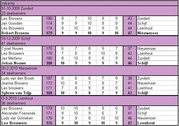 Noord-Zuid Wedstrijden 2009-2010 / Einduitslagen