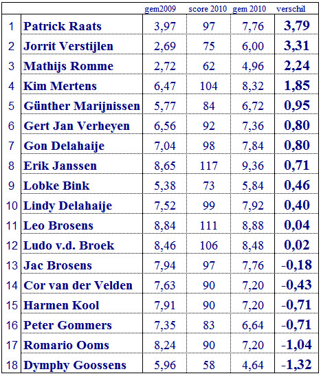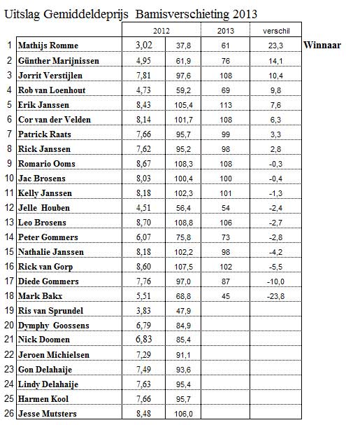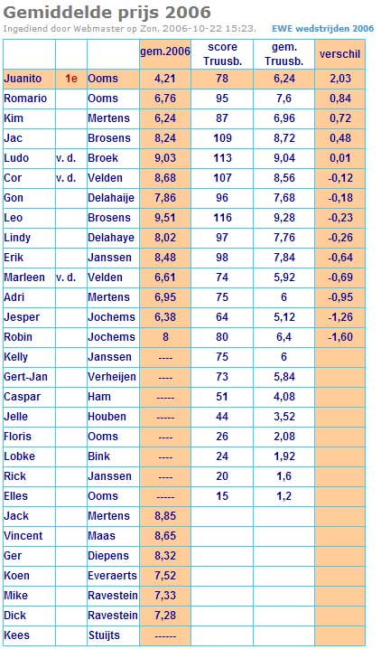 Gemiddeldeprijs / Uitslagen / Door de jaren heen