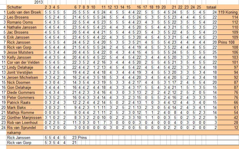 Keizer / Koning / Prins / Schildknaap / Uitslagen / Door de jaren heen