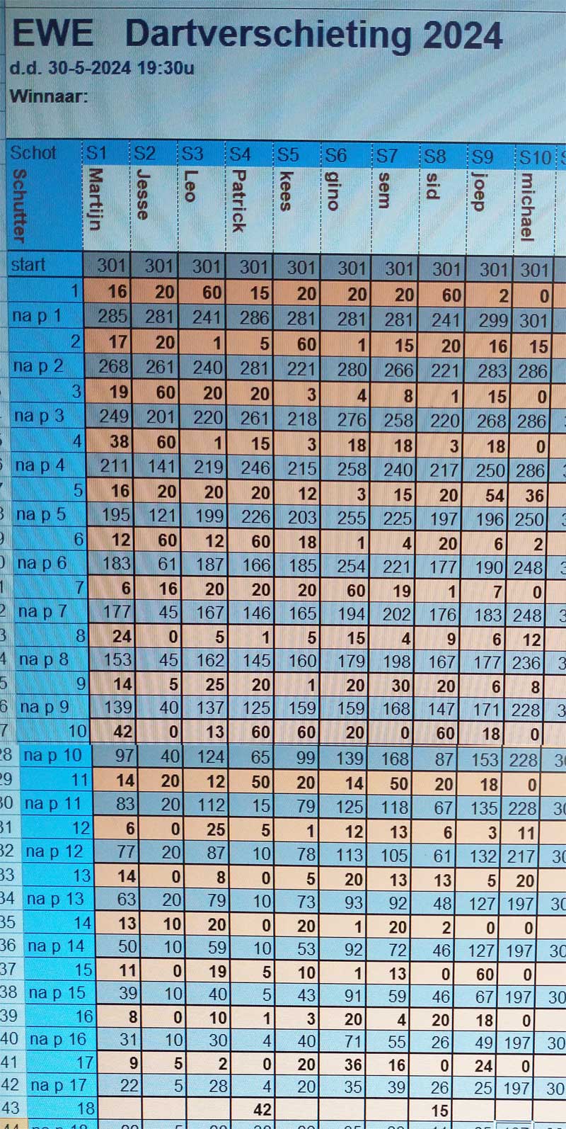 11 De eindscores, Patrick winnaar, Leo nog goede tweede
